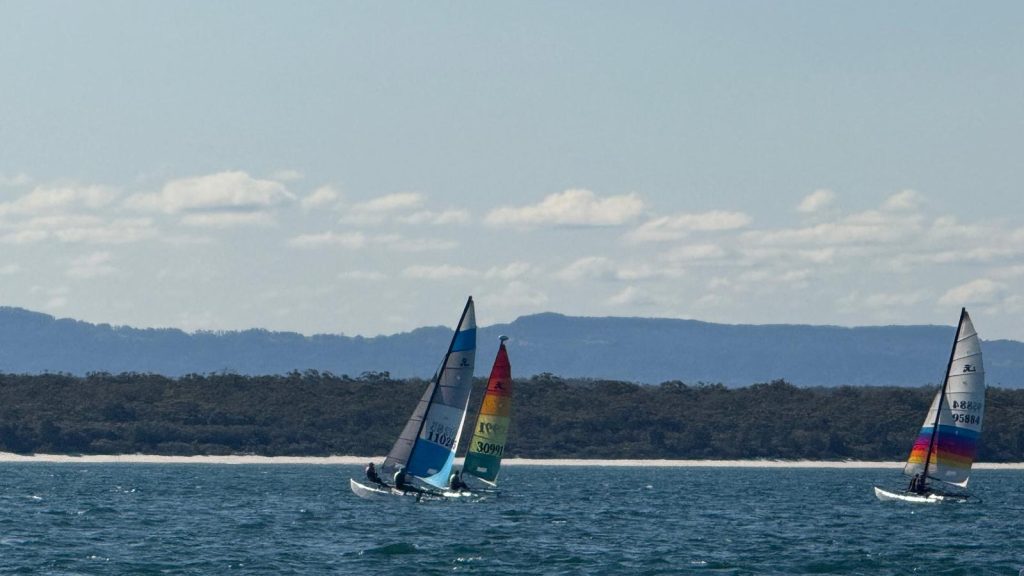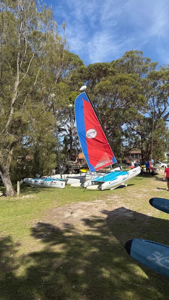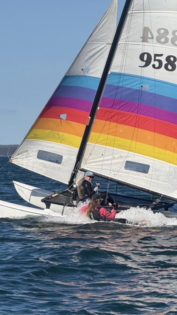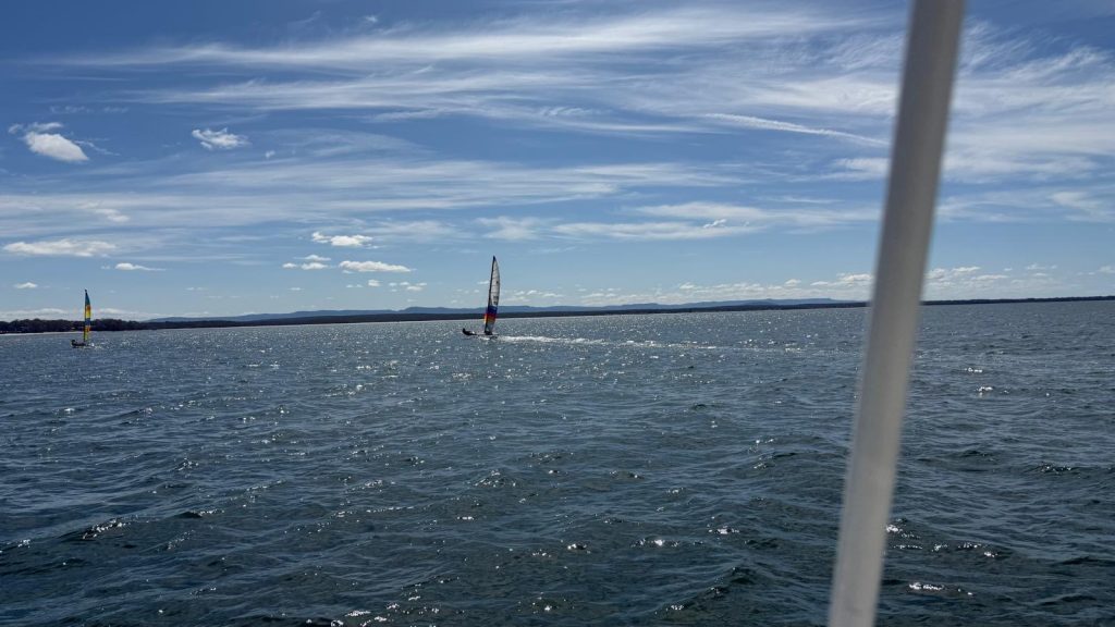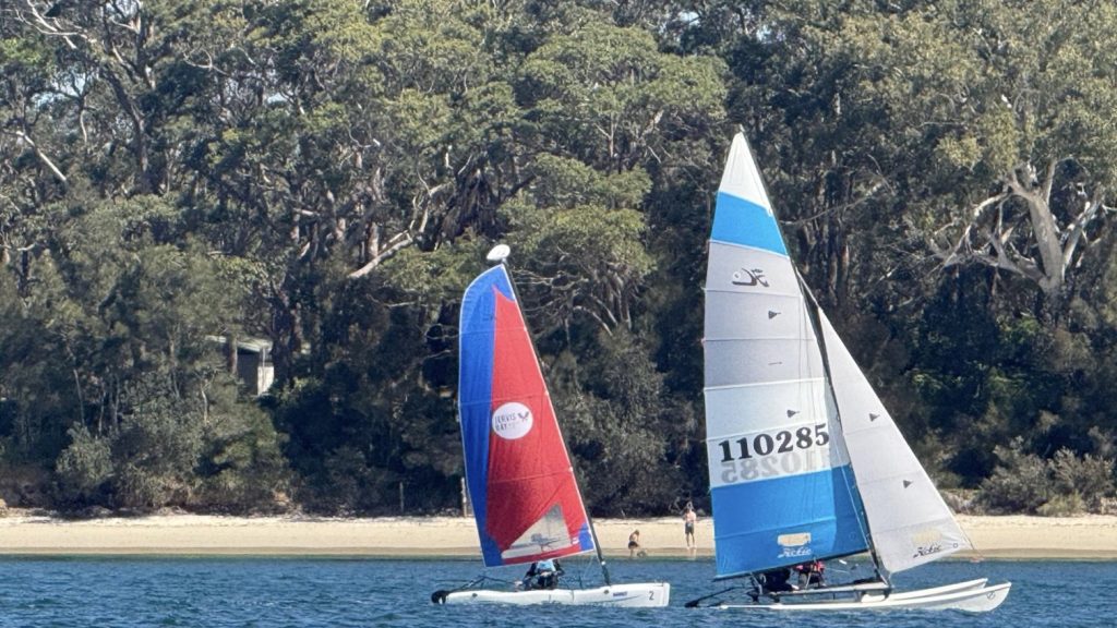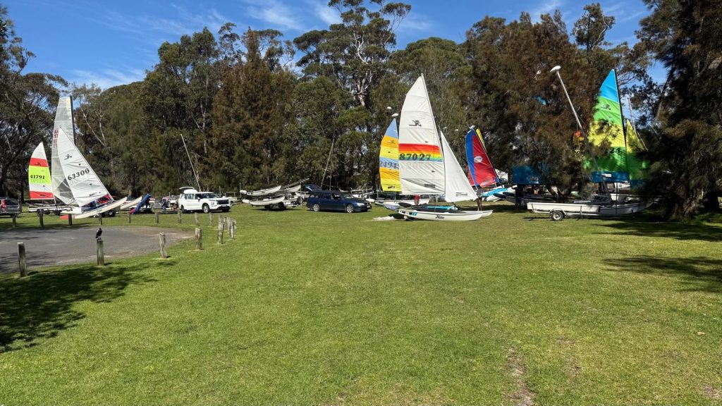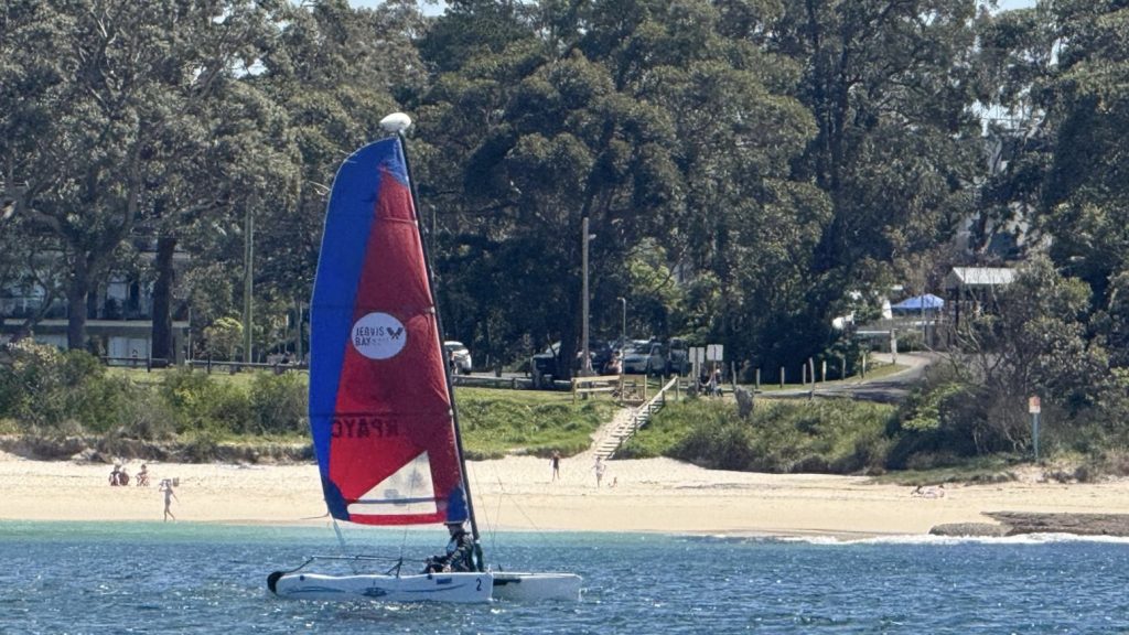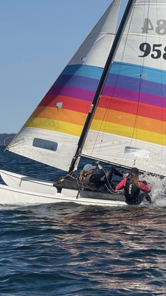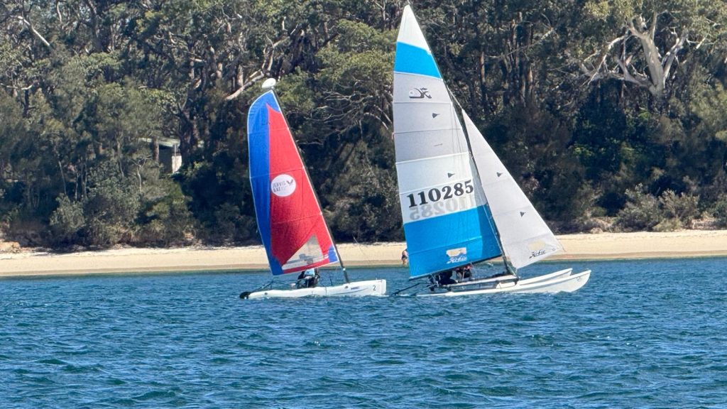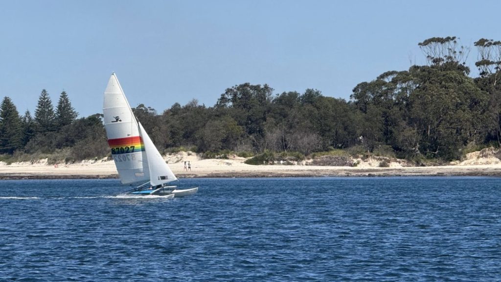 After a fabulous lunch cooked by club legends Oliver Lawson and Hannah de Rooy, we headed out for a second go at the Round the Bay Rally. With the wind shifting further west, the duty officer decided to reverse the course, which was better suited to the conditions. In the fresh westerly, competitors were challenged to keep their boats flat through the bullets and moving in the lulls — as Bridget and Charlie discovered while “tea-bagging” their way to Huskisson.