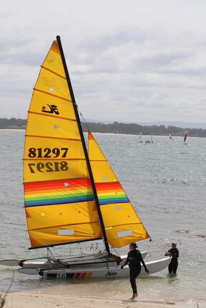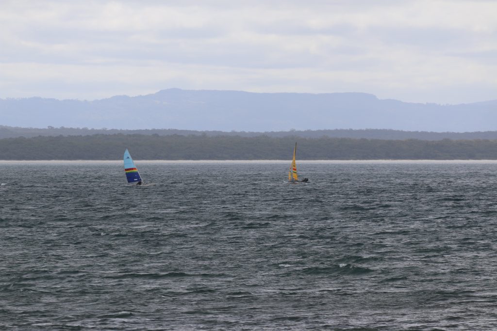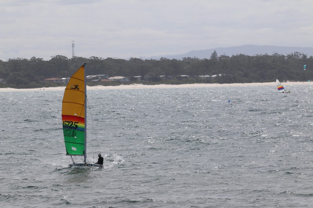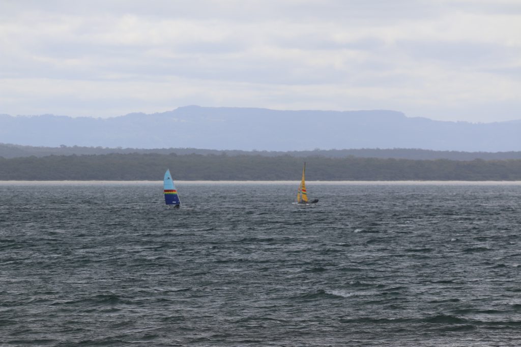 Also on the south coast for the weekend, Michelle & Watty were in town, with Watty on deck to run the racing with Egbert on Sunday. Additionally, regular blow in Ellie was in from Wangi as well, bring along Courtney for first ever experience sailing a catamaran. All we can say is the skiff sailing is evident when on the helm of a Hobie 16.