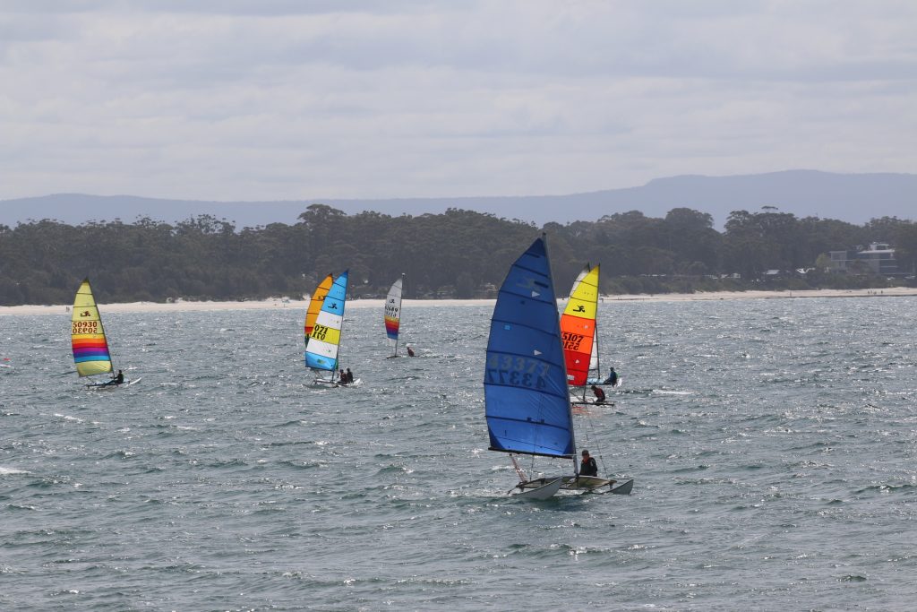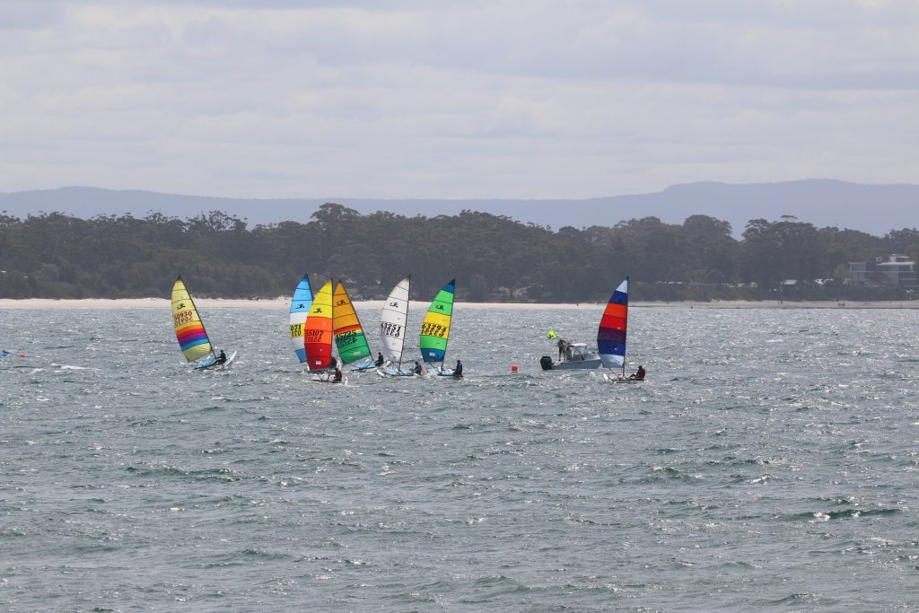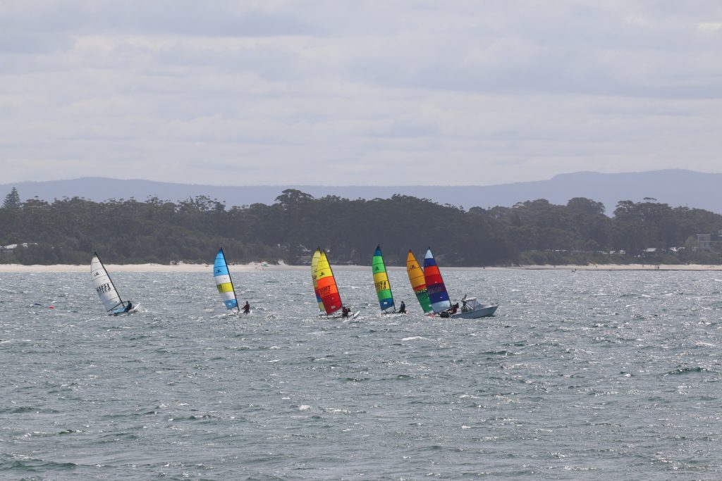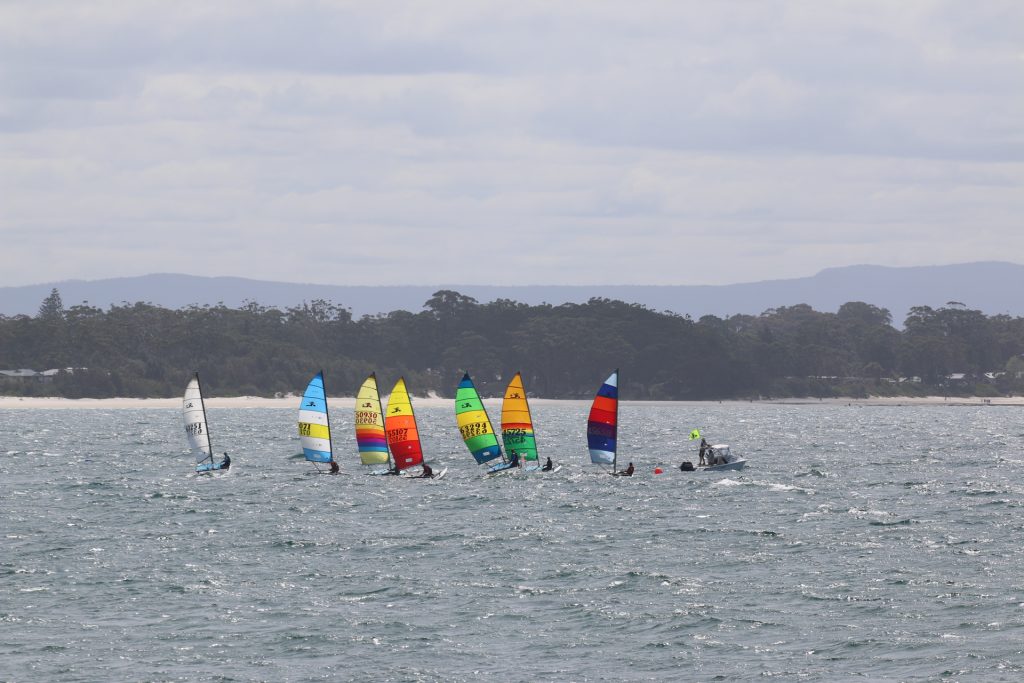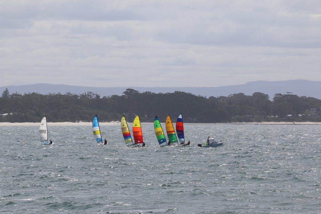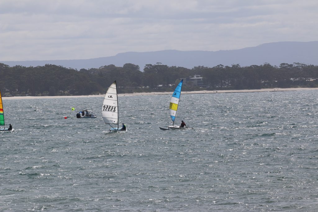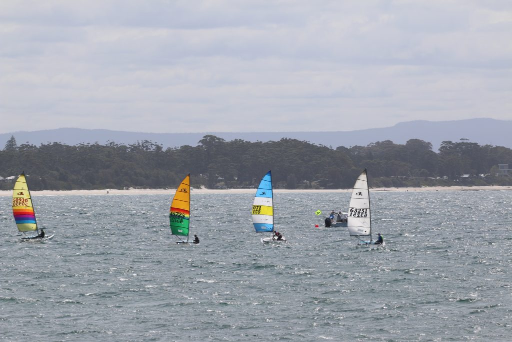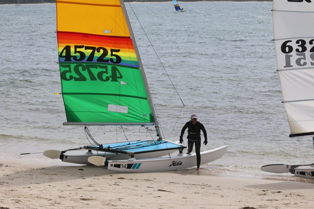 It was another exceptional weekend of sailing in Jervis Bay, as the VSC hosting the NSW Hobie Cat Association’s Hobie 14 Coaching Camp from Friday afternoon, through till Sunday’s single-handed championship. With a a grand total of 11 x Hobie 14s hitting the race track on Sunday, along with the Waves, Getaway, Dragoon and Hobie 16, the day was nothing short of magnificent as the biraga baliya, the black nor’easter, filled in for the afternoon.