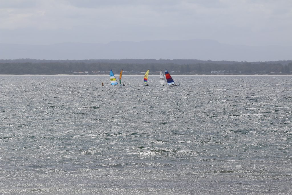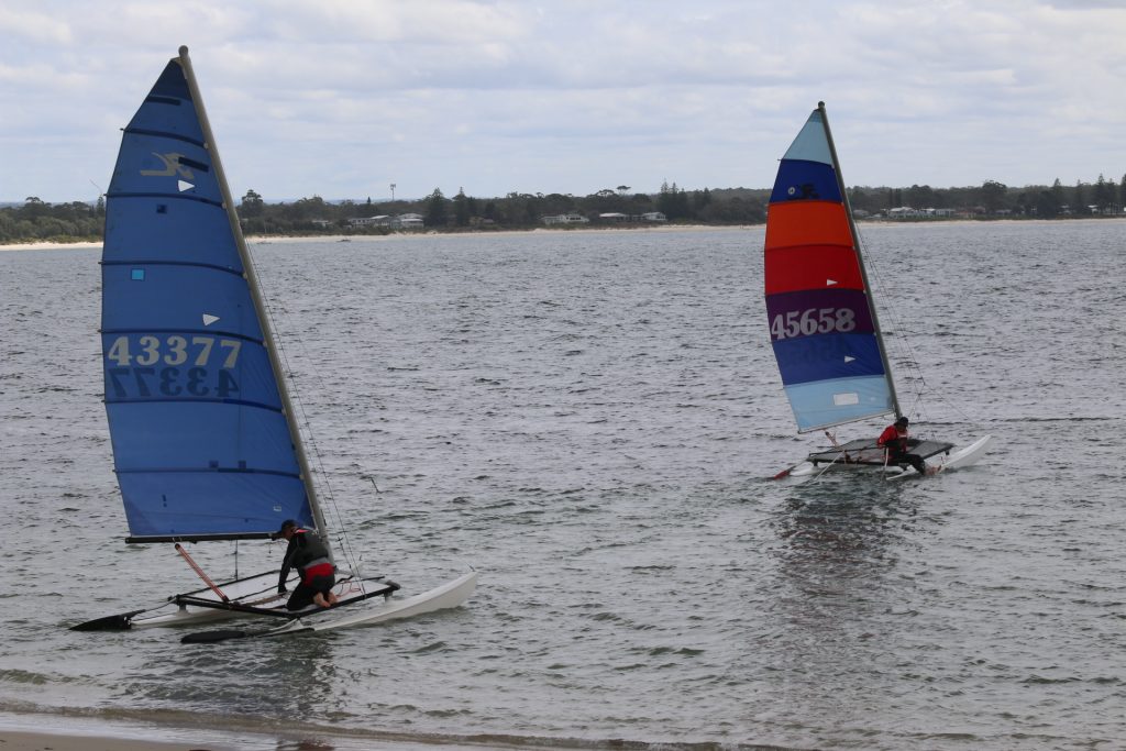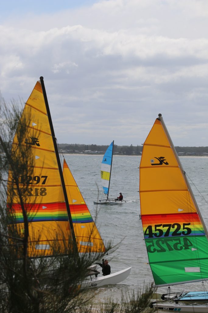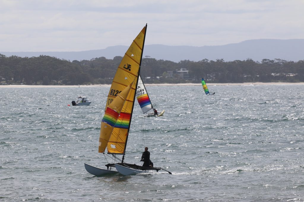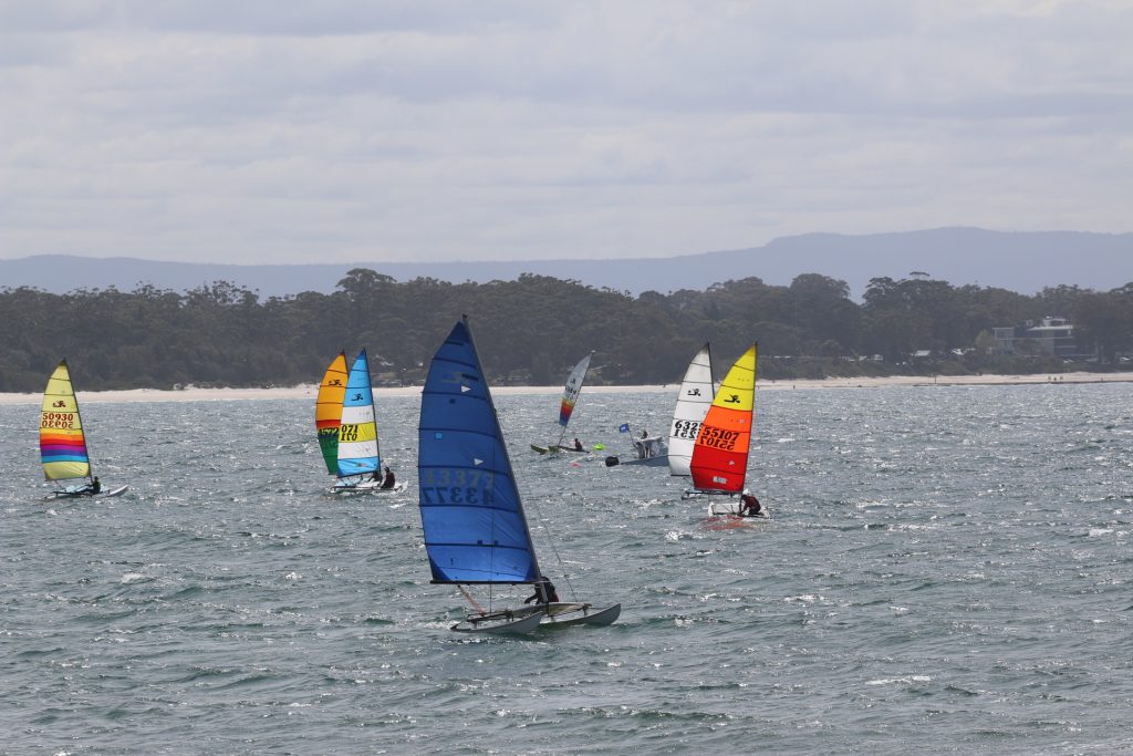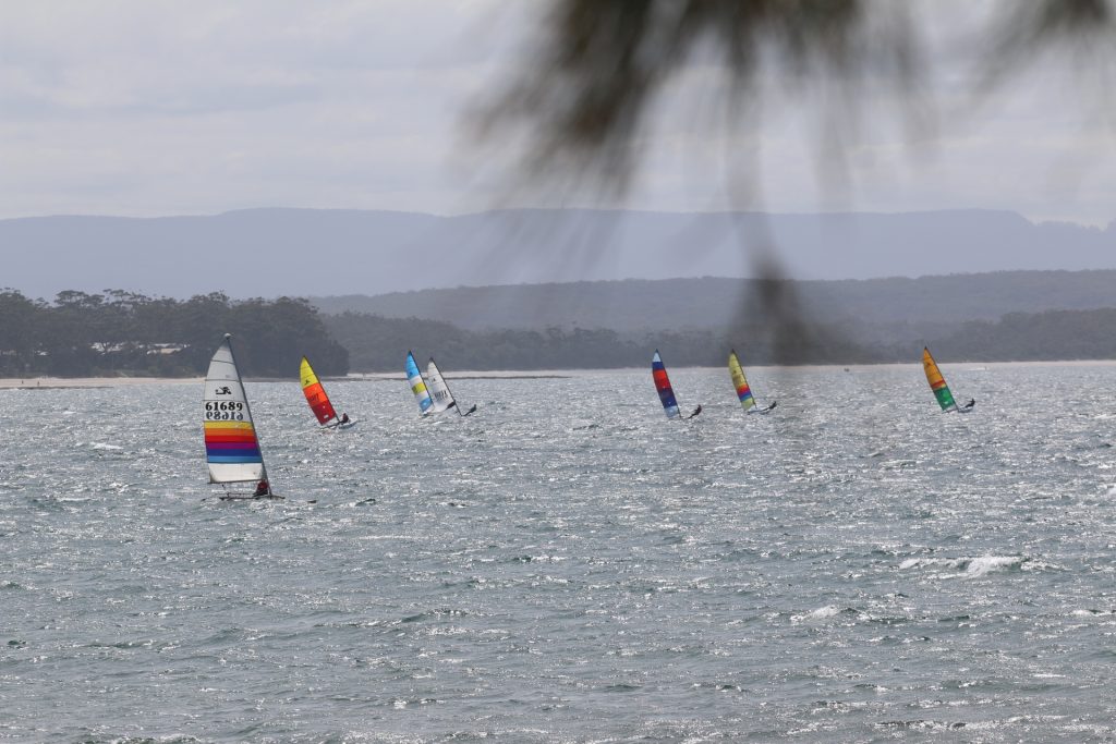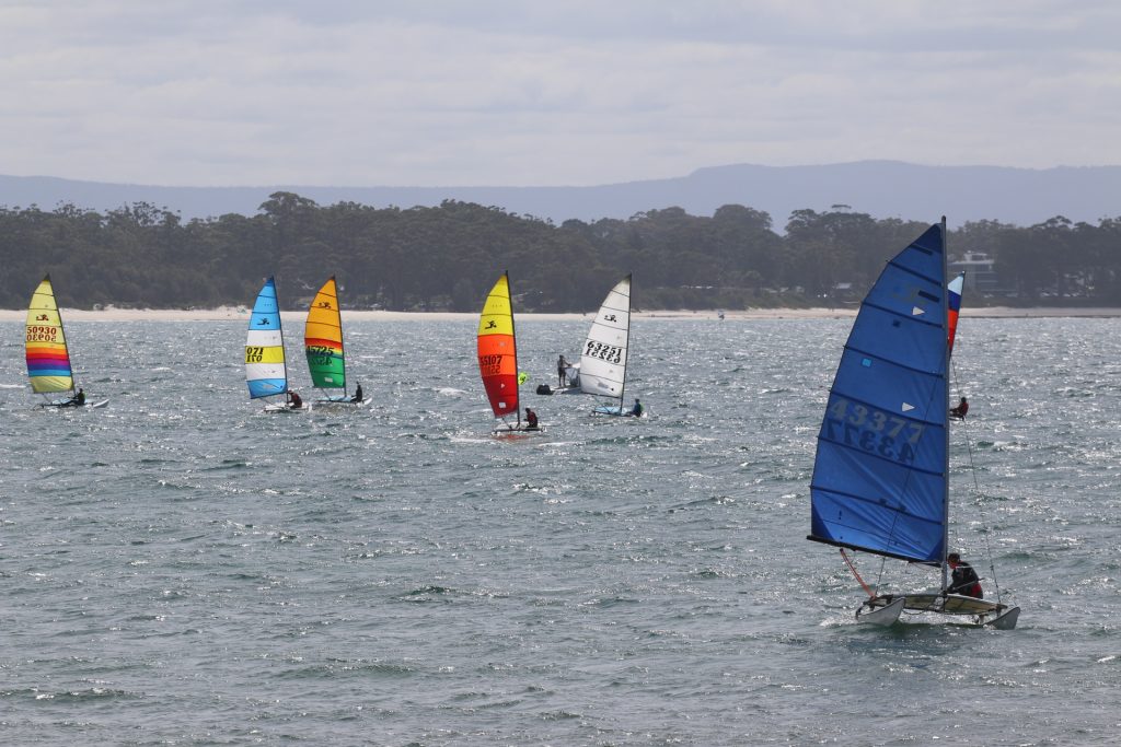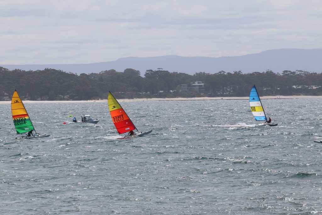 It was another exceptional weekend of sailing in Jervis Bay, as the VSC hosting the NSW Hobie Cat Association’s Hobie 14 Coaching Camp from Friday afternoon, through till Sunday’s single-handed championship. With a a grand total of 11 x Hobie 14s hitting the race track on Sunday, along with the Waves, Getaway, Dragoon and Hobie 16, the day was nothing short of magnificent as the biraga baliya, the black nor’easter, filled in for the afternoon.