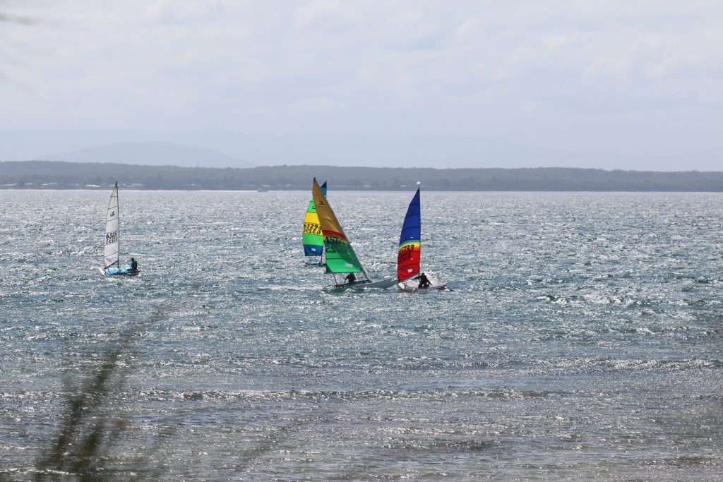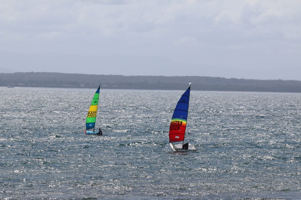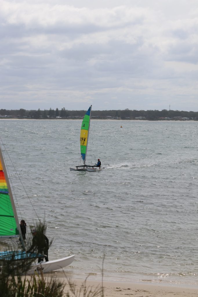 Saturday saw a welcomed change to the initial forecast, with a light to mid-range nor’easter filling in at midday allowing for a productive morning focussing on the sailing theory behind taming a Hobie 14. With Paddy running around on Tuffy, Emma, Hazel, Mark, Howard, Adrian, Rene with the ratbags Liana & Joel, along with Spinelli w/ Ava and Oliver, all hitting the water for a jaunt throughout the day.