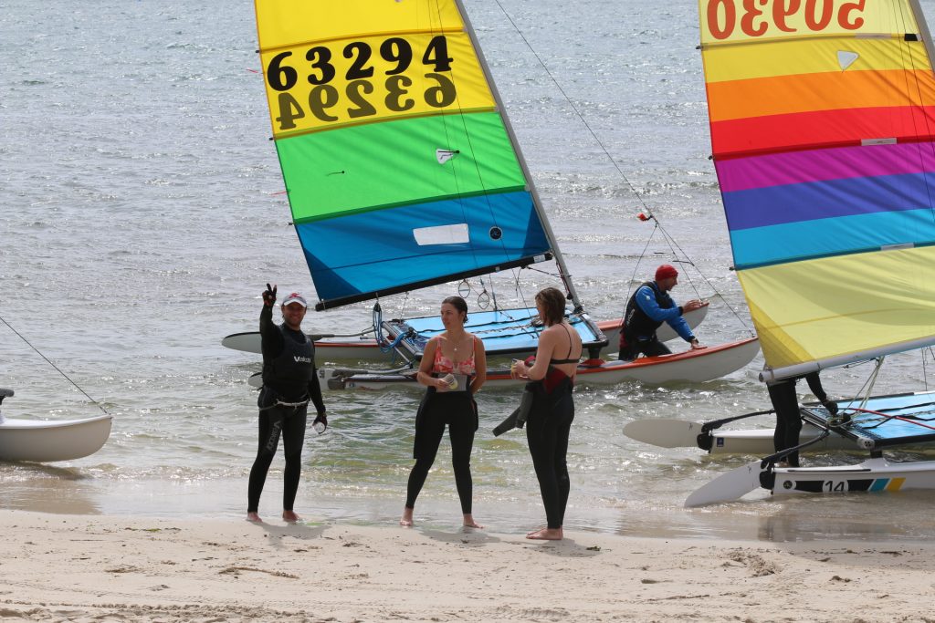 Kicking off after lunch on Friday, Paddy was on site with novacastrian, father/daughter duo Emma and Mark, as they began their lifelong journey as Hobie 14 sailors. As a regular team on the Hobie 18, Emma has committed to racing the H14 at the Hobie Nationals later this year. In addition, local legend Hazel was on site, celebrating the end of the school term by taking out the family H14 ‘Mouse’ for the first session of the season. We can confirm at the time of press, Bridget has been informed the Rafterys will require an additional H14 on her arrival home from Europe. With Mark and Paddy on ‘Tuffy’, Hazel and Emma had an exceptional time getting their bearings if the H14s in the dying south-easterly.