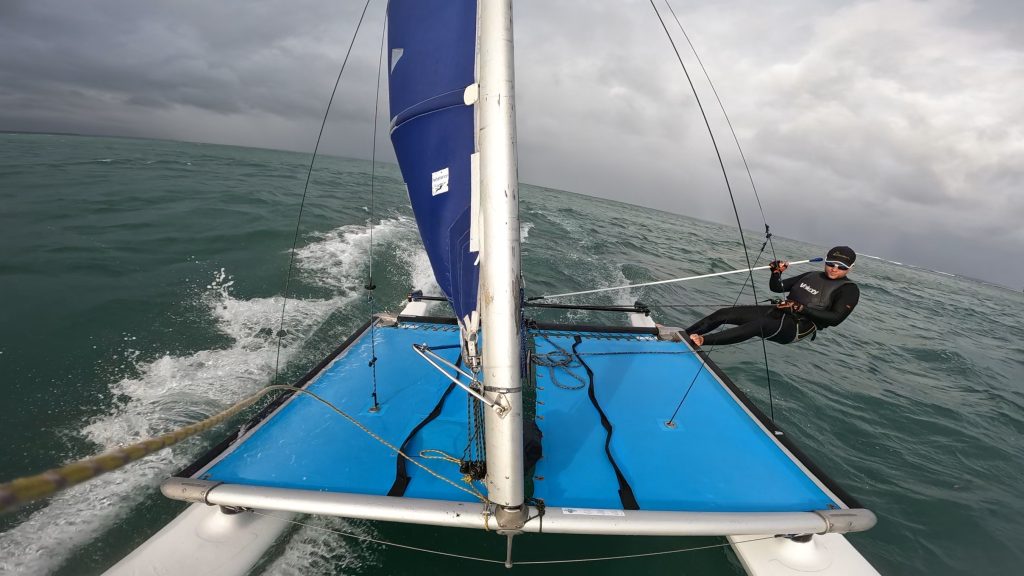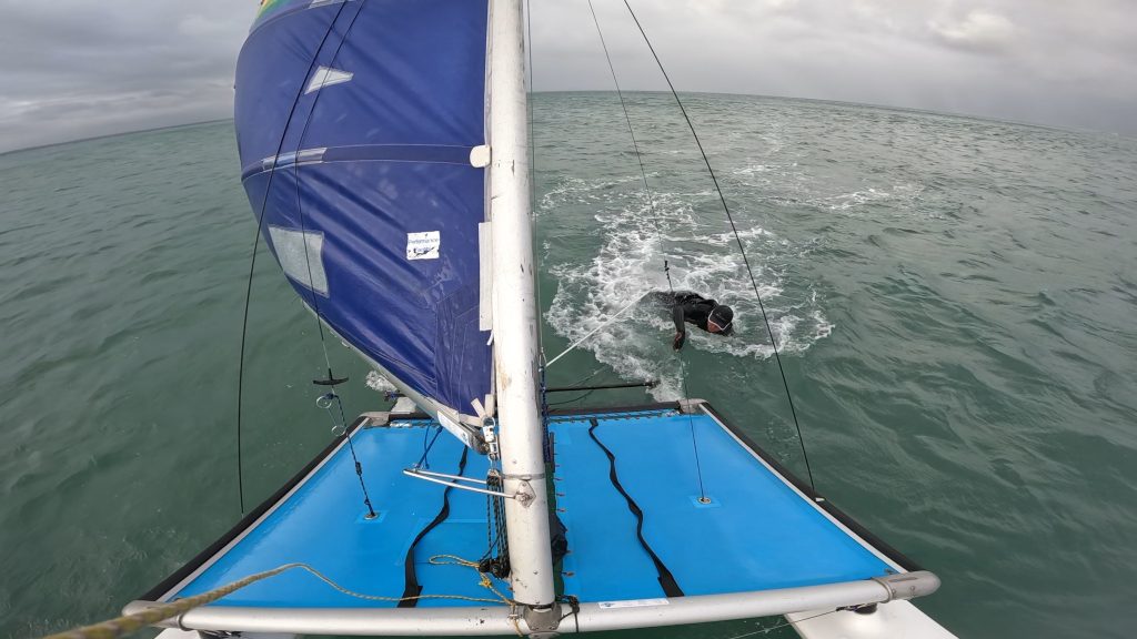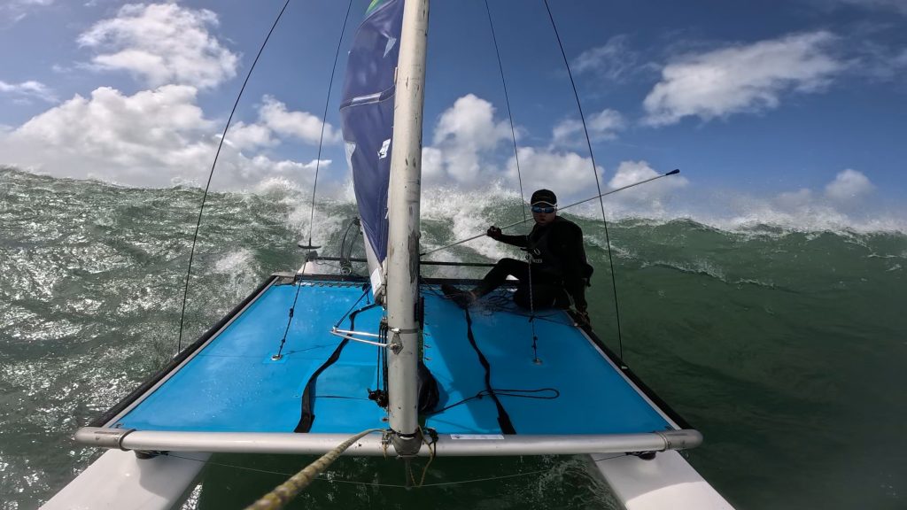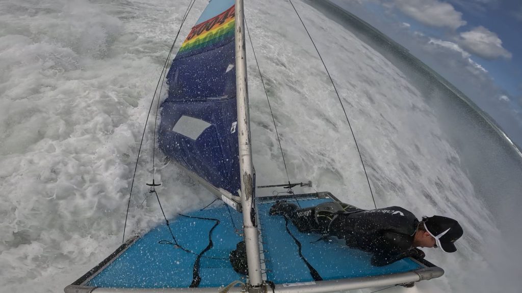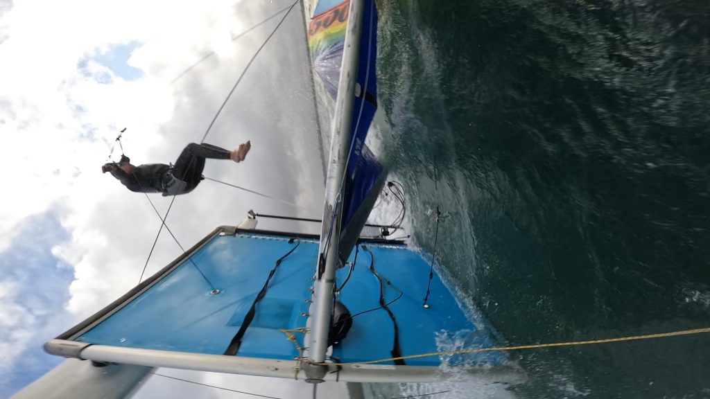 Paddy managed to sneak the on the forestay, whilst Courtney and MB were on shore with the midrange camera.