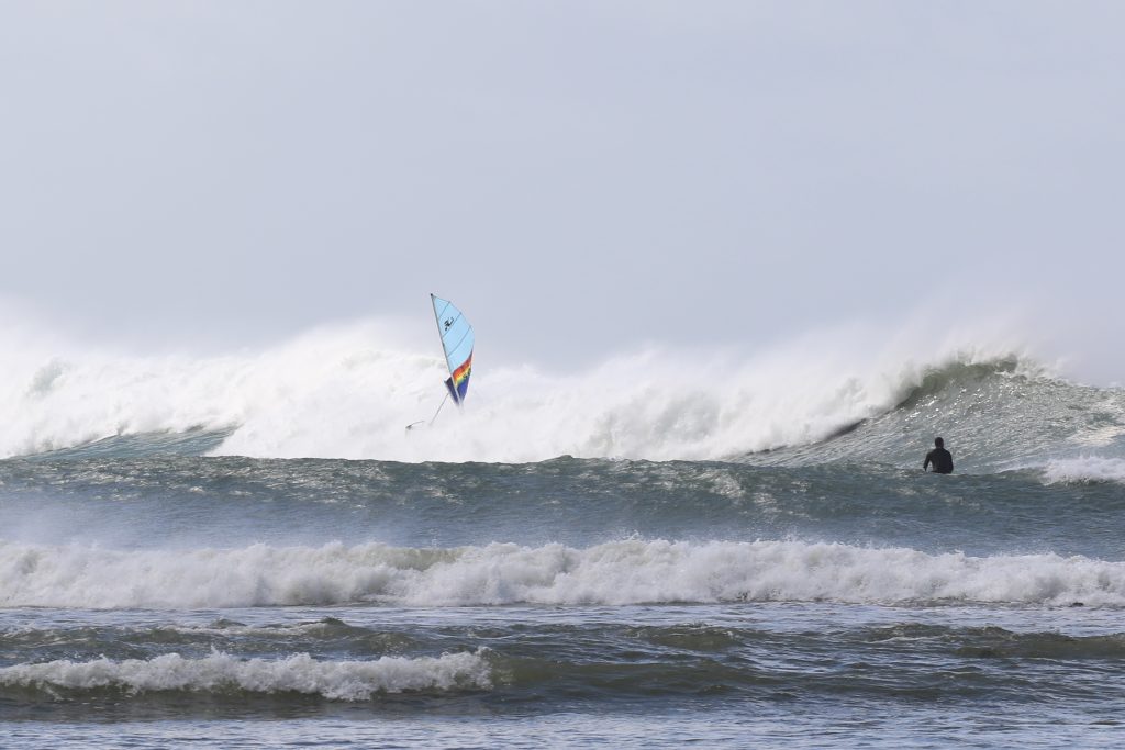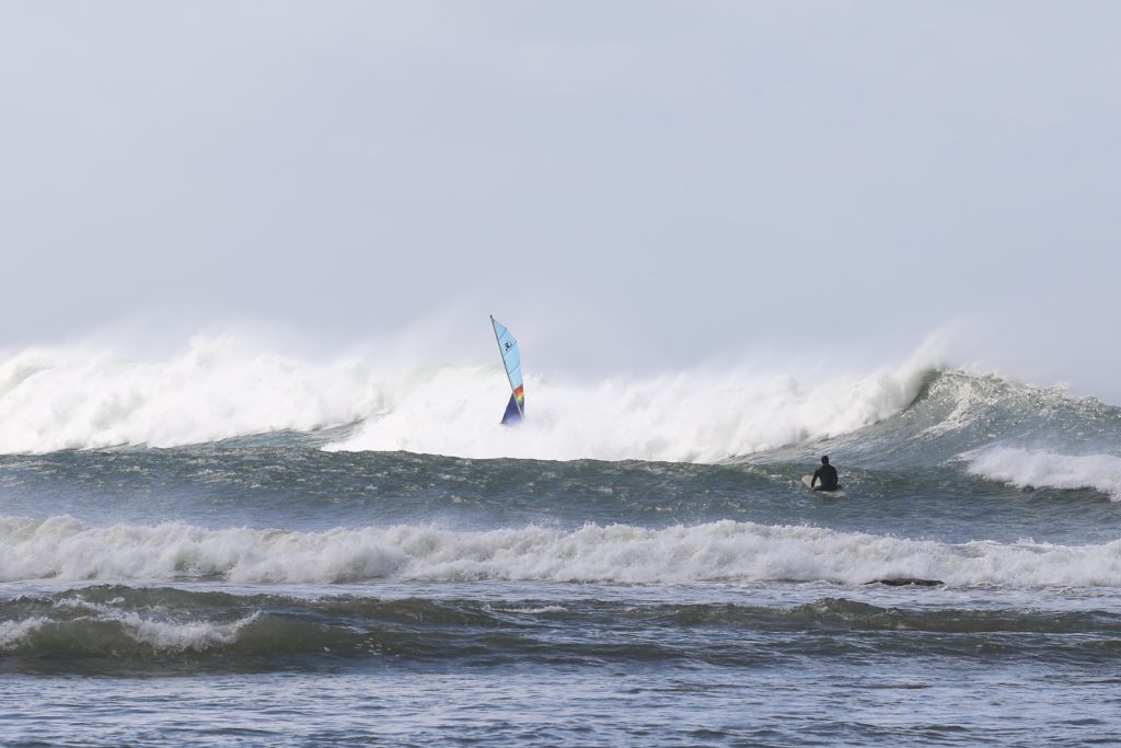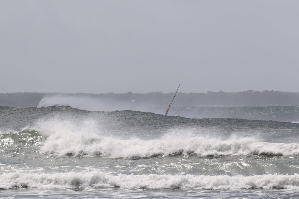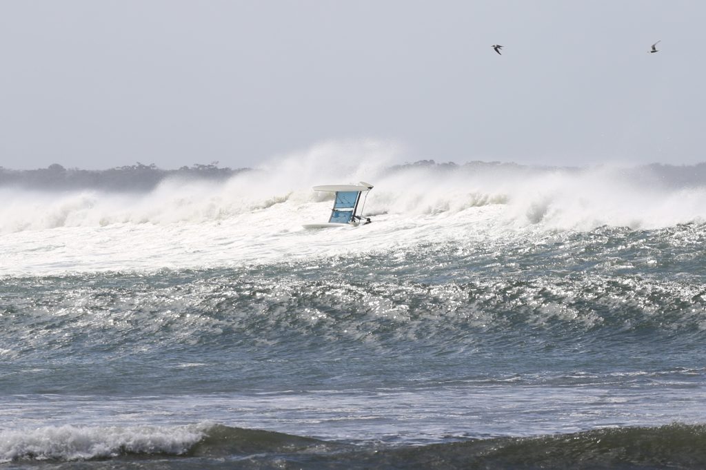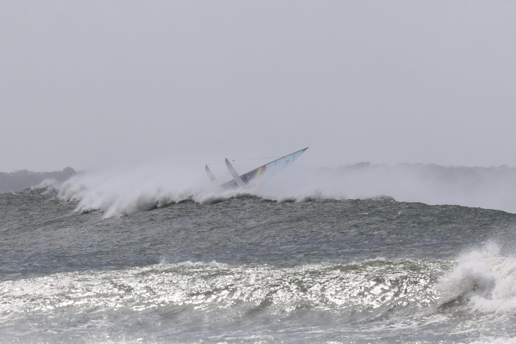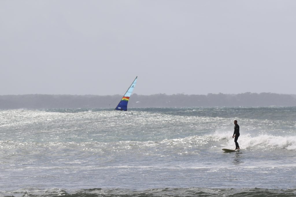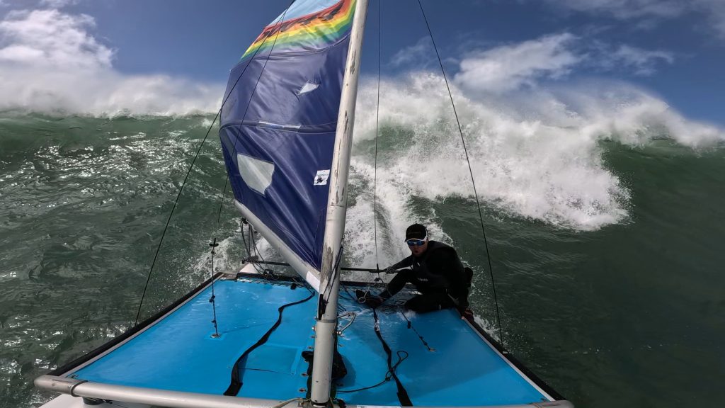Last week, the east coast was lit up with over 6-metre waves hitting the coastline from the south-east. And with over 30+ knots of wind blowing along with it, there was only one craft that was up for the task … the humble Hobie 14. However, there were only two boys mad enough to take their boats out: Andrew Spinelli and Paddy Butler.